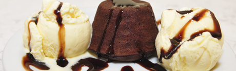 (3 bolas de sorvete de chocolate e Coca-cola)